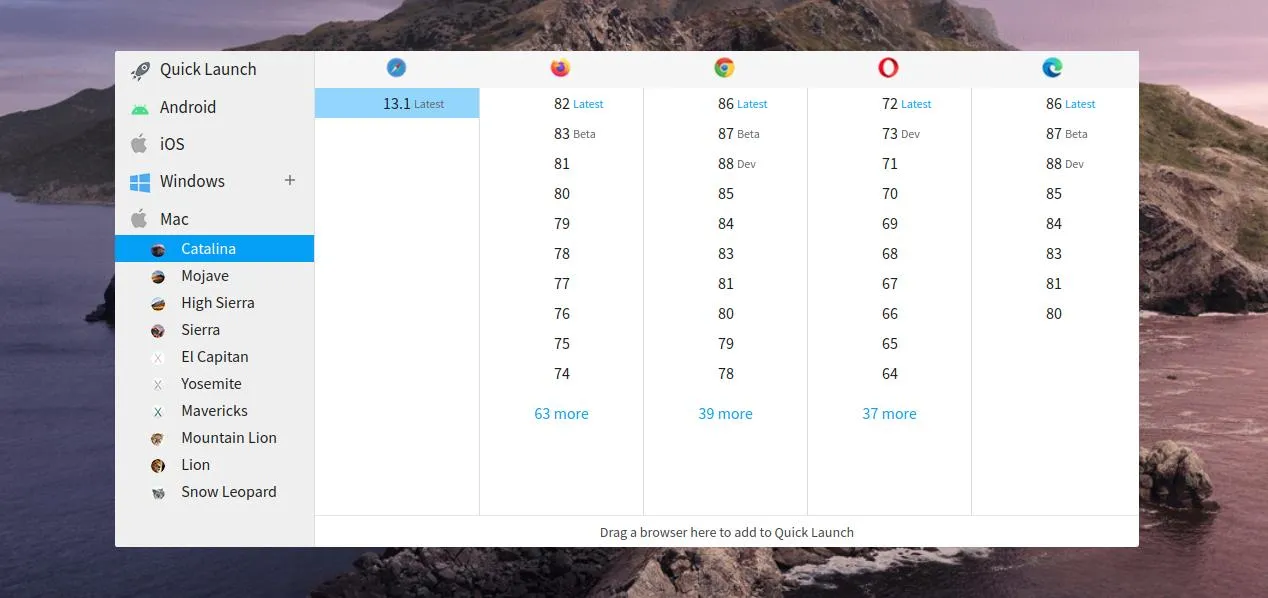 BrowserStack is a SaaS that allows you to connect, using your browser, to remote devices with other browsers / OS. You can even select old browser versions, a mobile device (like iPhones, etc)