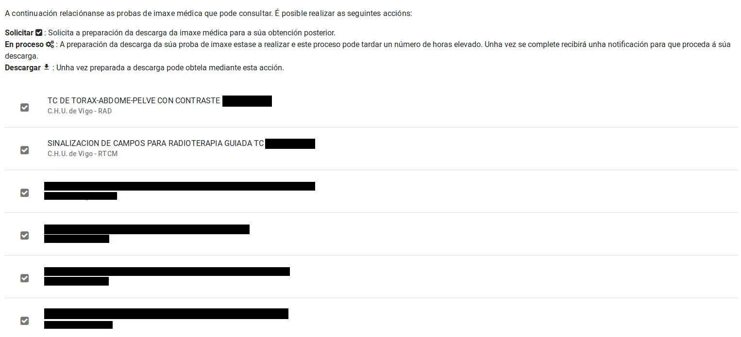 Debido mi ya no tan reciente enfermedad , y dedicado tiempo a acceder a la página web del Sergas (Servizo Galego de Saúde) para usar un servicio que fue presentado en 2016, y que desde finales de 2018 permite acceder a la función, que yo creo que útil, de descarga de las pruebas diagnosticas de imagen: TACs, resonancias, radiografías, ecografías, etc…