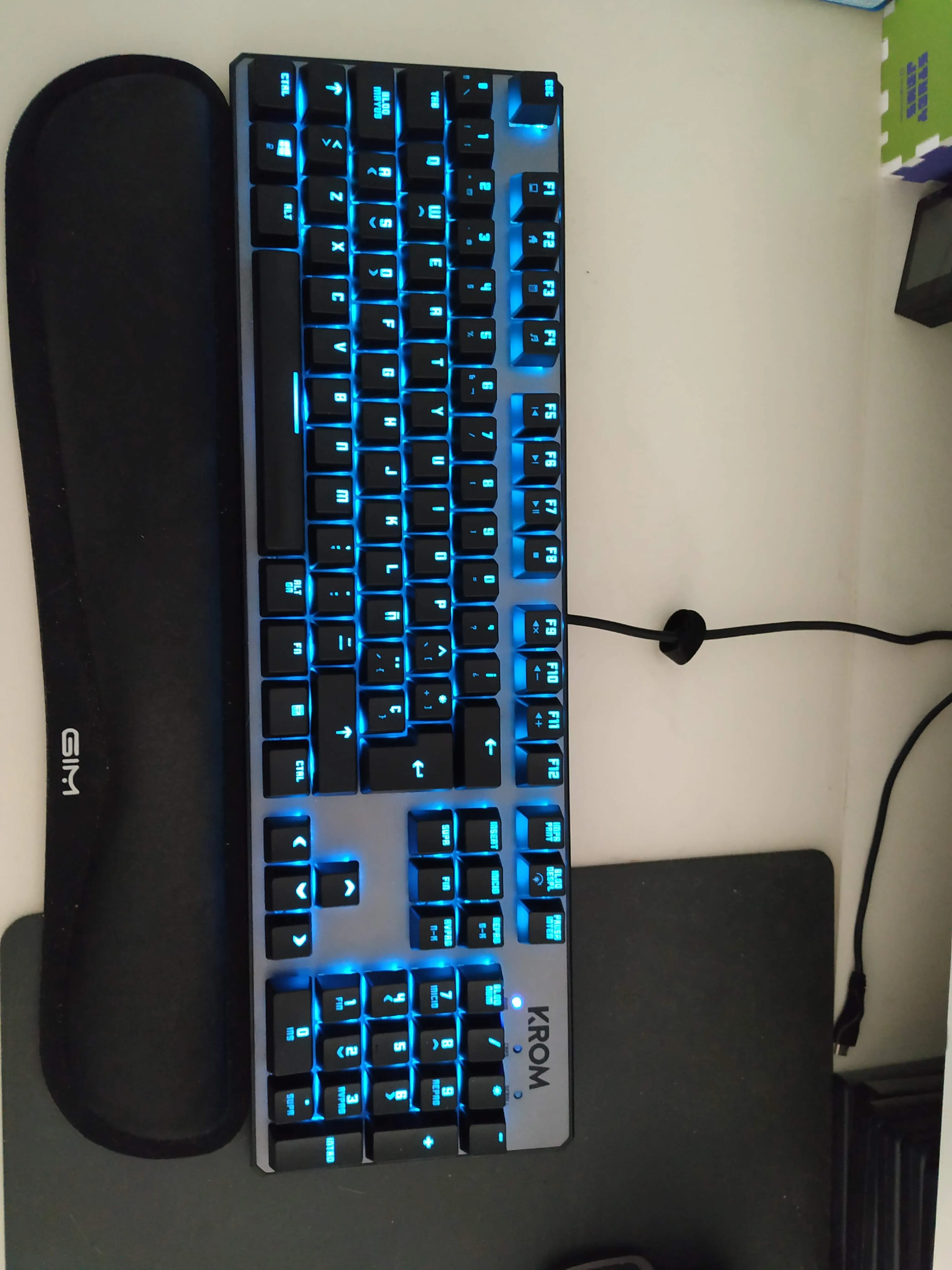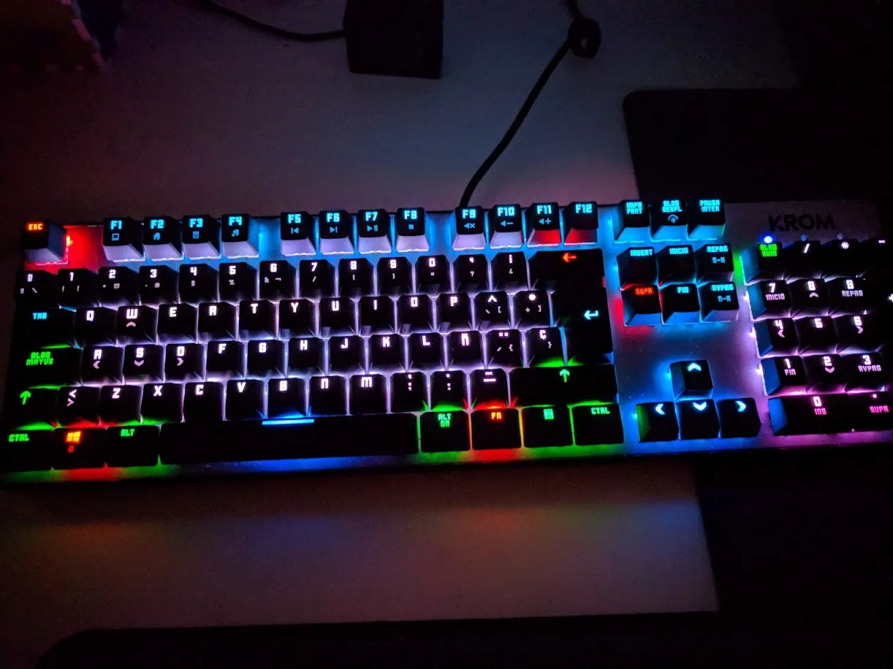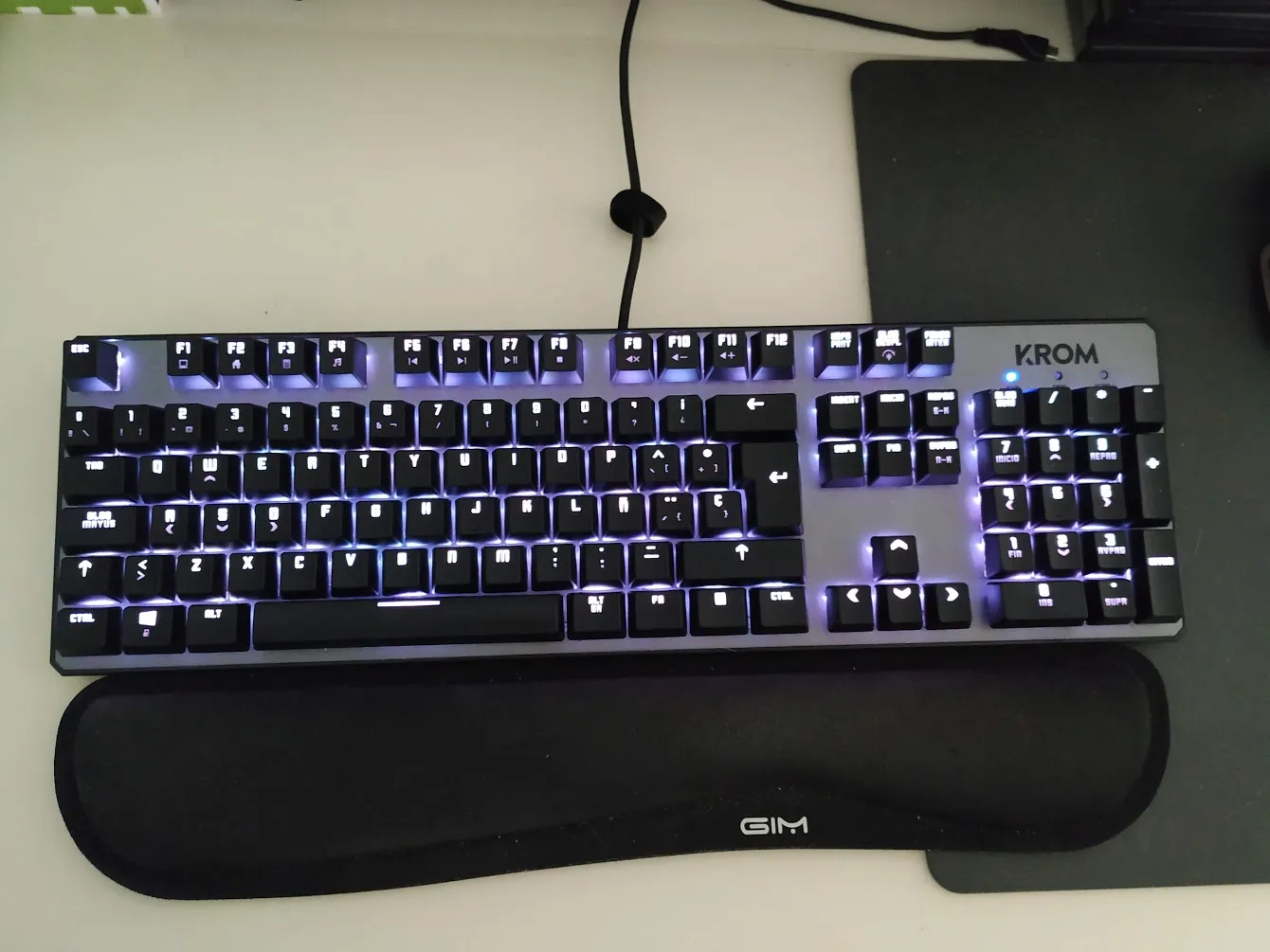 Finalmente el escogido ha sido el que ves en la foto superior, el Krom Kernel un teclado mecánico con switches Outemu Red, unos clones de los Cherry Mx Red y con iluminación RGB configurable desde el propio teclado (sin software externo) que cuesta actualmente unos 55€ en Amazon y del que además tienes una versión sin teclado numérico (las llamadas TLK, Ten Key Less) por un poco menos (50€)