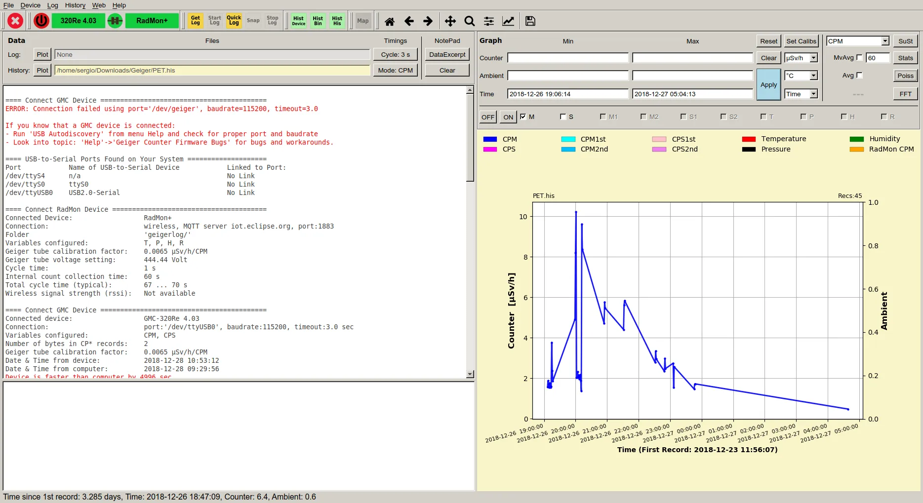Para los interesados, el software de manejo del contador Geiger que he usado es Software Libre y está escrito en Python: GeigerLog