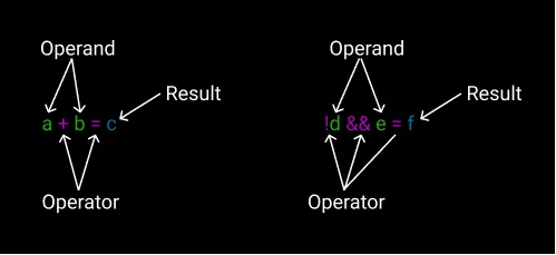 We use a lot of operators: sum (+), subtraction (-), multiply (*), division (/), logic and (&&), negation (!),…
